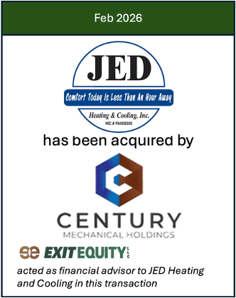 With Exit Equity’s specialized experience in the HVAC industry, Exit Equity acted as the M&A advisor negotiating the sale of JED Heating and Cooling to Century Mechanical Holdings, a strategic buyer who operates multiple HVAC companies through the US.